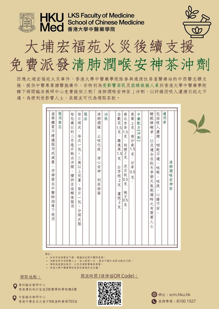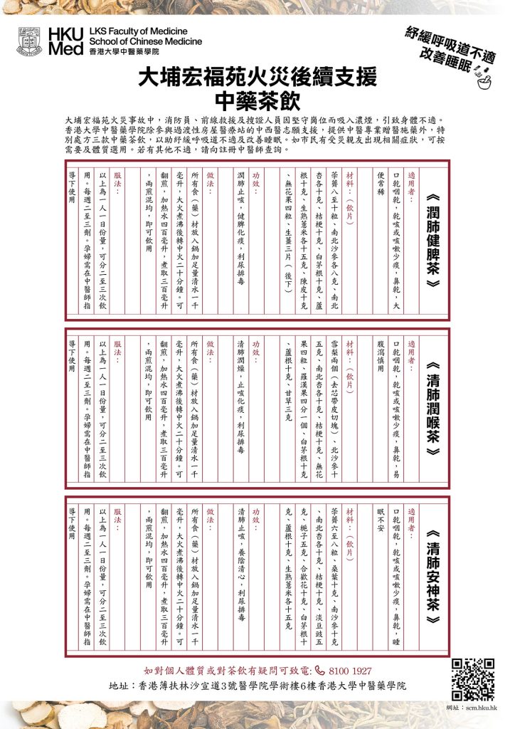 香港大學中醫藥學院 – 大埔宏福苑火災後續支援