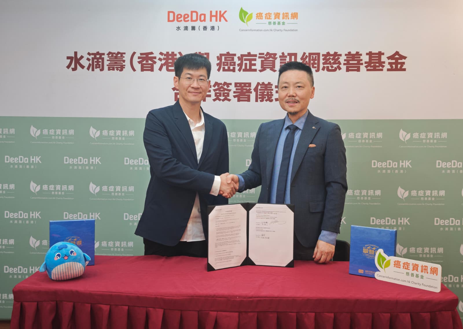 癌症資訊網慈善基金會與 DeeDa HK 水滴籌(香港)攜手 共建數碼籌款平台 科技助困連接愛心