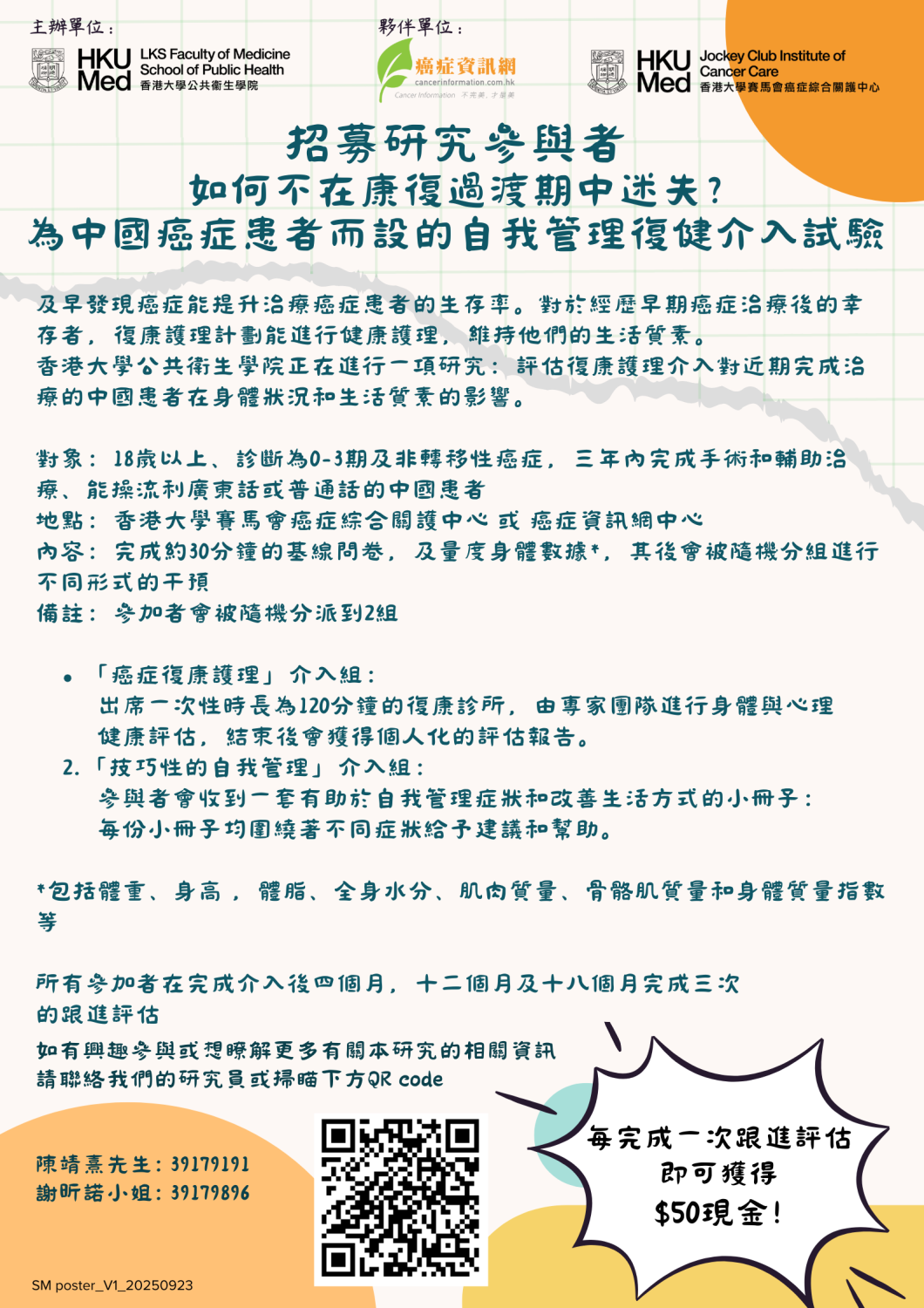 招募研究參與者–如何不在康復過渡期中迷失? 為中國癌症患者而設的自我管理復健介入試驗