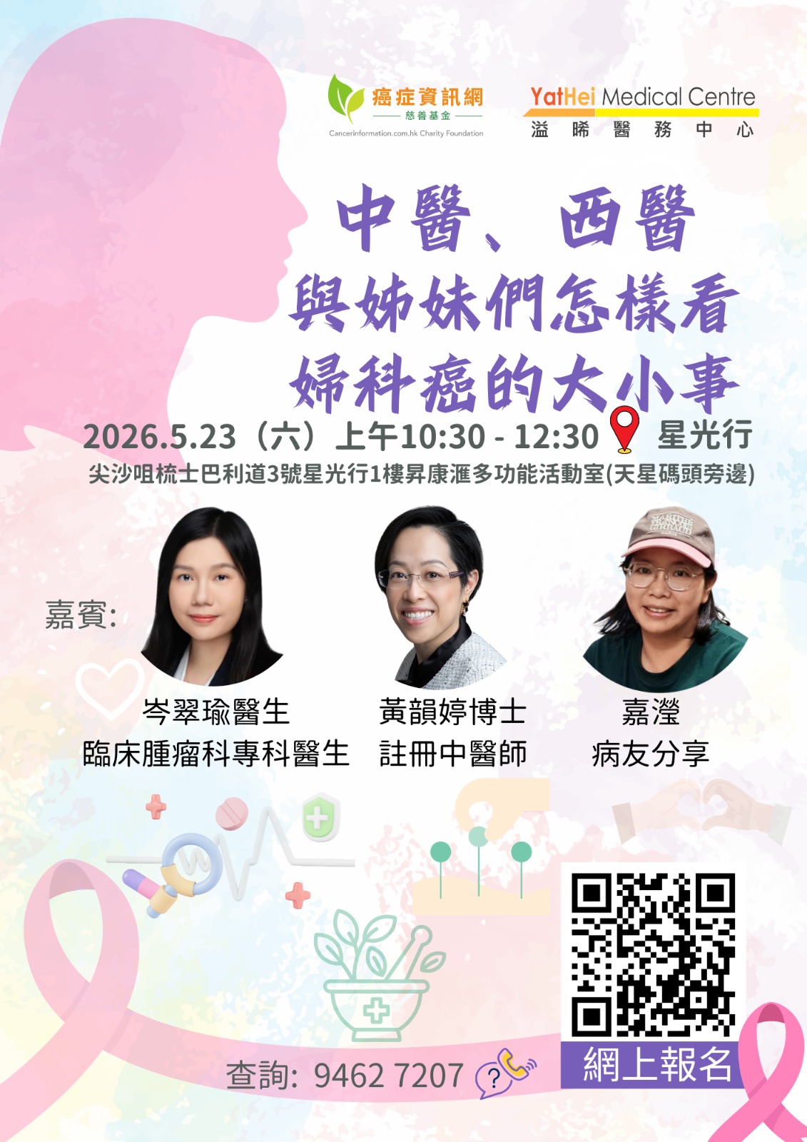【講座】中醫、西醫與姊妺們怎樣看 婦科癌的大小事